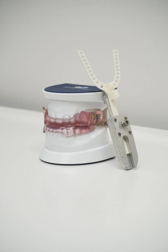 In onze praktijk bieden we ook behandelingen met een MRA-beugel (Mandibulair Repositie Apparaat) – een effectieve oplossing voor mensen die last hebben van snurken of slaapapneu. Deze beugel zorgt ervoor dat de onderkaak tijdens het slapen iets naar voren wordt gehouden, waardoor de luchtwegen vrij blijven. Dit vermindert of voorkomt het snurken en verbetert de ademhaling tijdens de slaap.